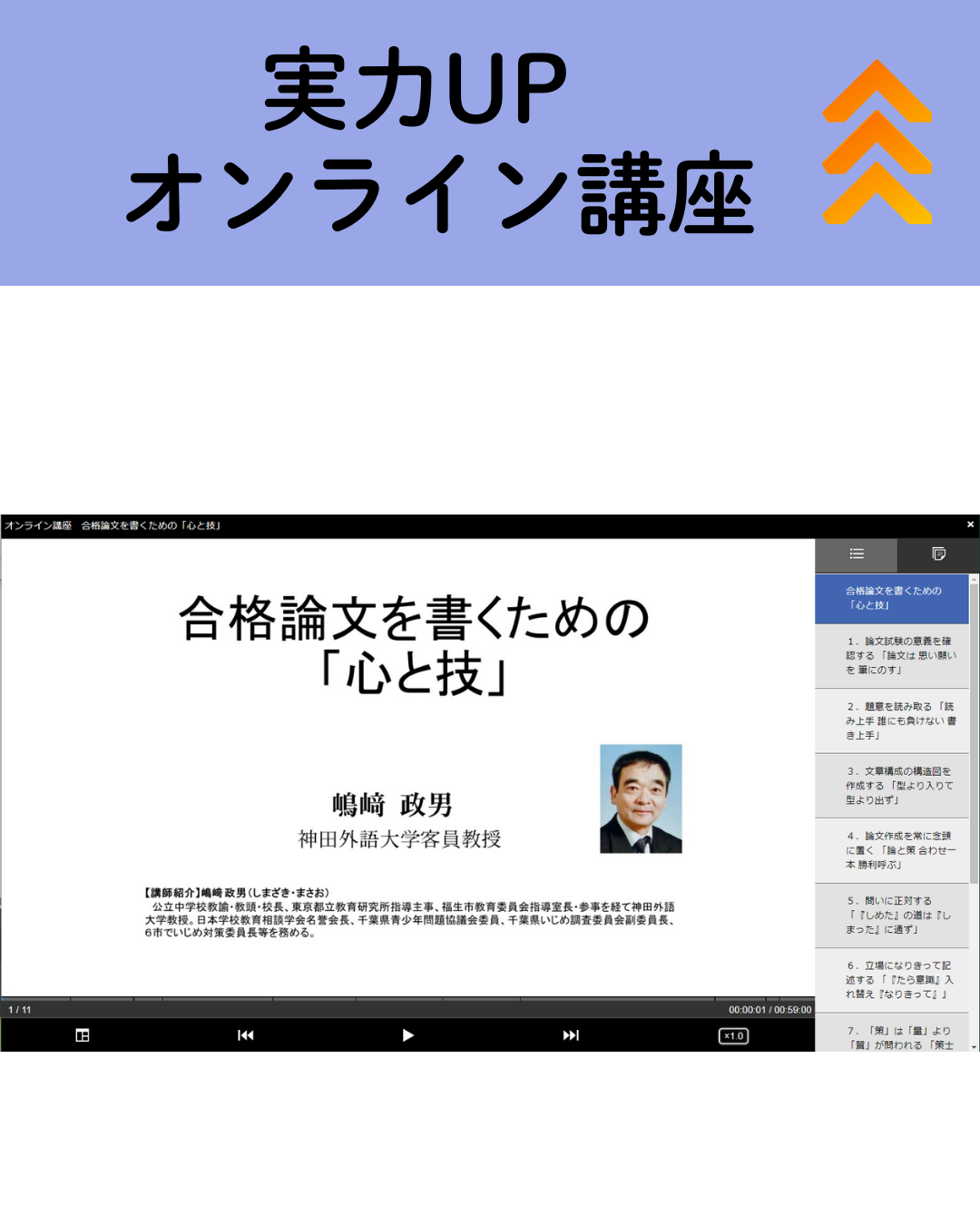 【オンライン講座】合格論文を書くための「心と技」 〈講師:嶋﨑政男〉