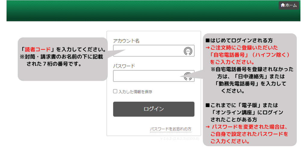★こちらからアクセスし、下記のアカウント名・パスワードを入力してログインしてください。